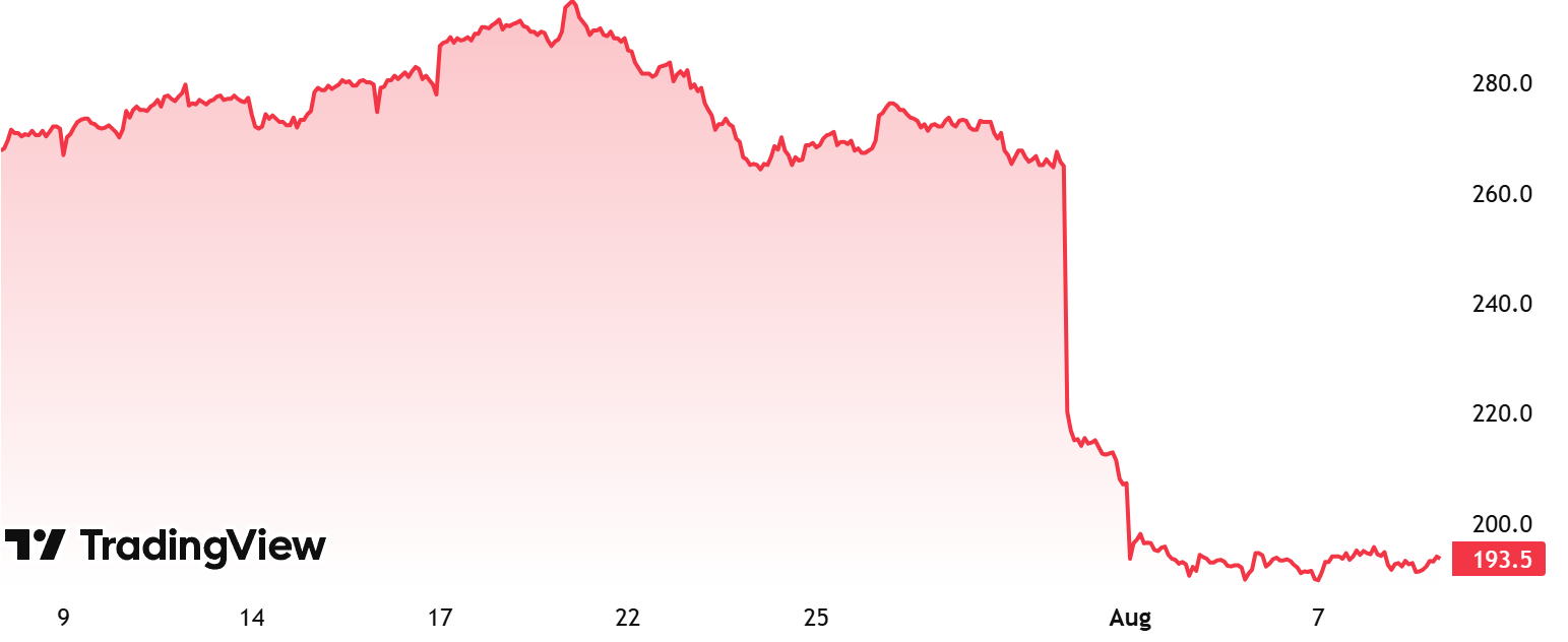 However, management cut FY25 guidance to CHF 460–500m in sales and a 10–14% EBITDA margin (from CHF 480–520m and 17–20%). They also indicated that PCT volumes are likely to remain flat through the second half of 2025, with some orders potentially shifting into the first half of 2026. In other words, the rebound may arrive later than investors initially expected. I’ll spare you the tariff angle (like almost every other earnings report this season, it was mentioned) as I don’t think that’s what pushed the stock off a cliff.