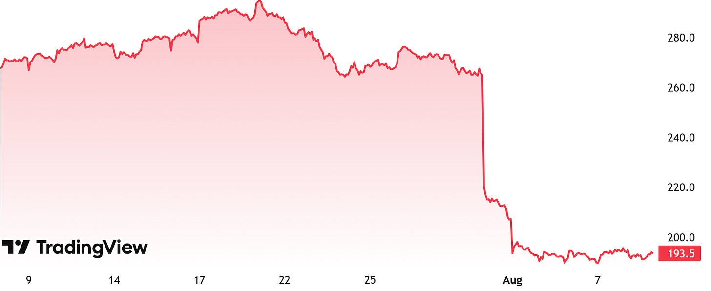 As I said, a big part of my thesis comes down to timing. Comet dropped its first-half results on July 31st 2025, and the market’s reaction was brutal, just look at what happened to the stock after the H1 ‘25 print: