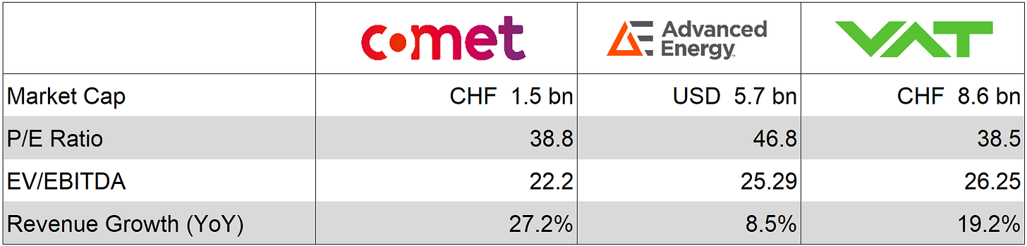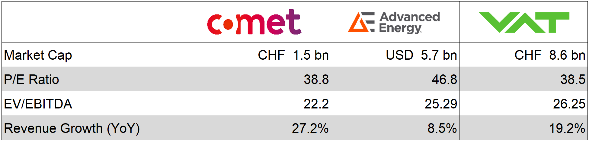 Why it’s a good comp: Closest operational analogue to Comet’s core PCT business.VAT Group (Switzerland)
