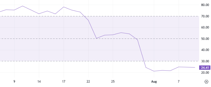 My thesis is all about timing, the stock being down ~26% since the July 30, 2025 close (a big move for a guidance reset). I could just point to the RSI and call it oversold (which it is), but that’s not the real argument. Still, I’ll show it anyway, because why not:
